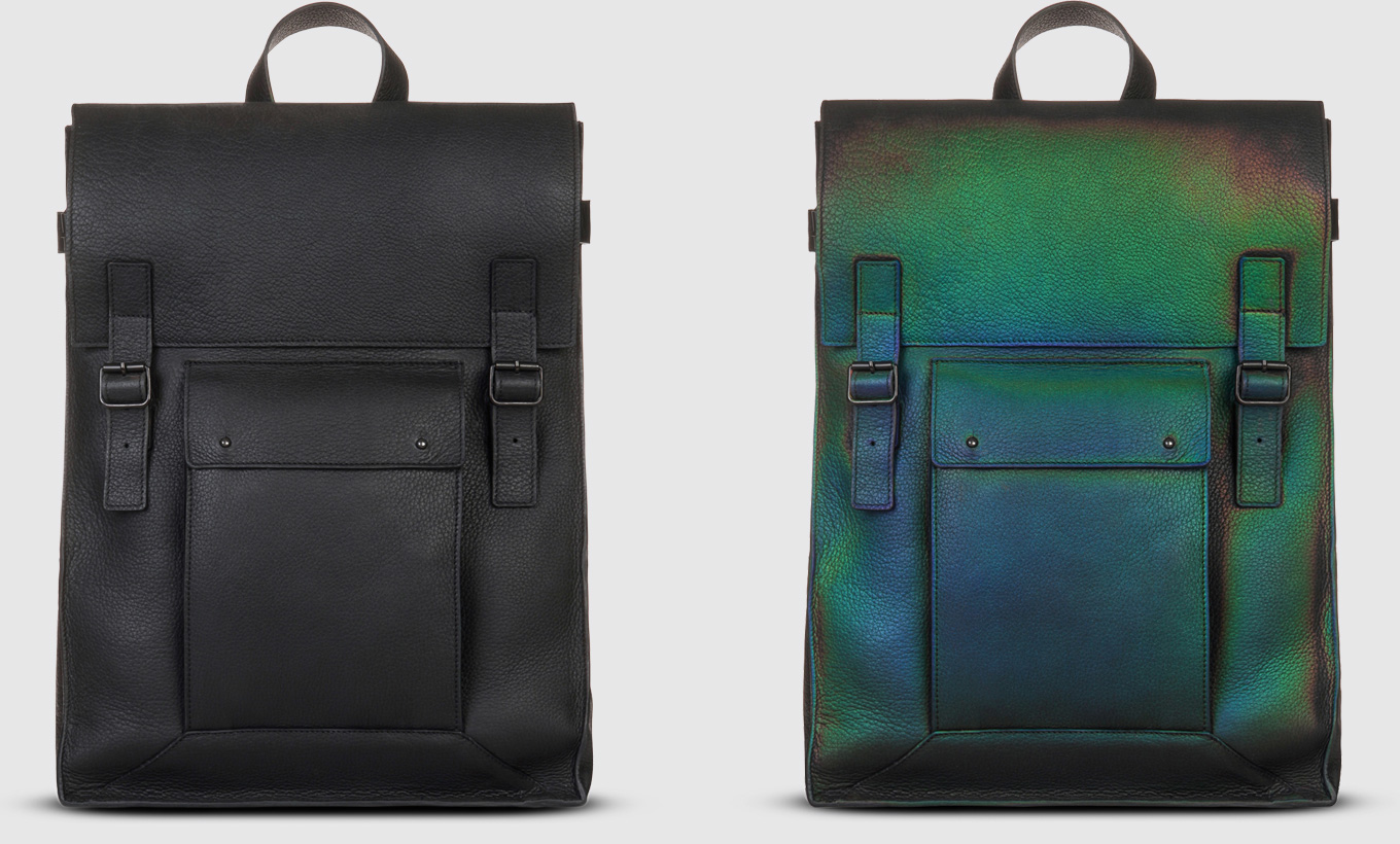 A mochila ilustrada a baixo, espelha o que acontece no ambiente, mudando de aparência com níveis de ventos, temperatura e luz solar, outras ainda mudam de cor de acordo com o calor corporal. A coleção é composta  por bolsas, porta-celulares, carteiras e mochilas e até mesmo porta-velas.