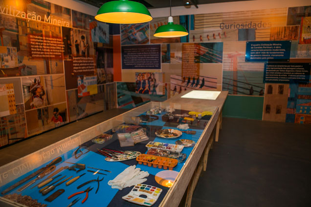 A exposição “Recosturando Portinari” conta com quatro salas, que utilizam linguagens variadas para criar um envolvimento do público com o universo do ilustre filho da cidade de Brodowski. Logo na entrada, inconfidentes mineiros dão boas-vindas aos visitantes, em uma instalação com os elementos do quadro. É como se a pessoa entrasse na obra, participando dela e vendo cada detalhe em tamanho ampliado bem de pertinho. Na sequência, espantalhos (figuras recorrentes no trabalho do pintor) relembram momentos marcantes da vida e da obra de Portinari em uma linha do tempo interativa com vídeos e fotos, enquanto ao lado são revelados os bastidores do ateliê de restauro de “Civilização Mineira” – processo que levou cerca de um ano para ser concluído.