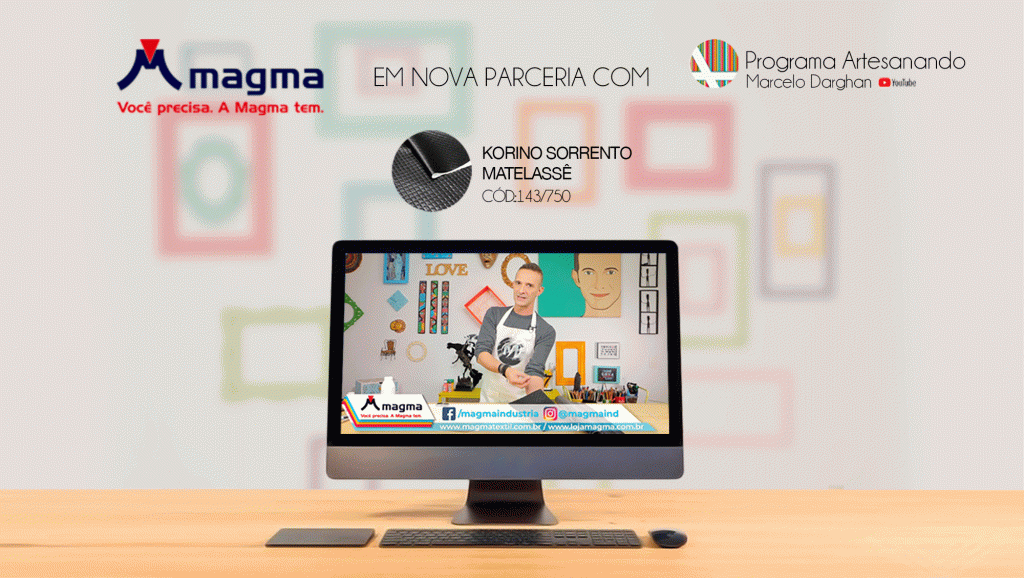 Marcelo Darghan é o novo parceiro da Magma, e no vídeo de início da nossa parceria ele ensina a fazer uma linda bandeja em seu @programaartesanando utilizando nosso material Korino Sorrento Matelassê.