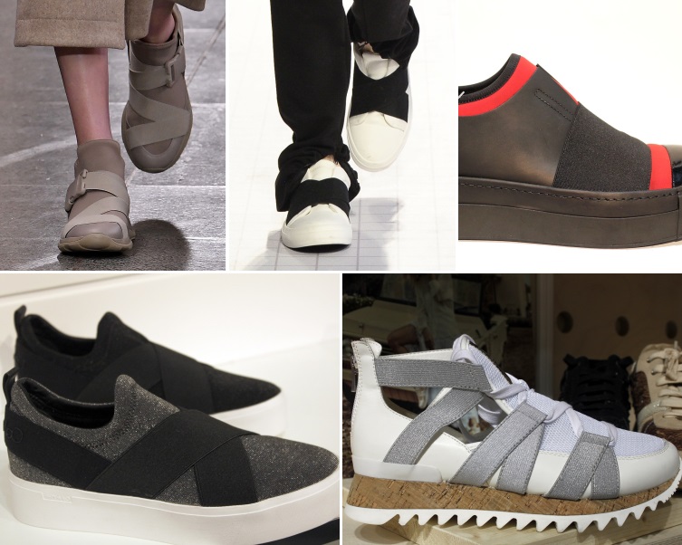 Para a temporada, propostas de tiras cruzadas como elemento estético foram recorrentes. Da mesma forma, elásticos tanto mais largos quanto presos por fivelas ou elos também foram pontuados revelando um toque de utilitarismo. Tons neutros e modelos vulcanizados demonstraram forte presença no segmento.