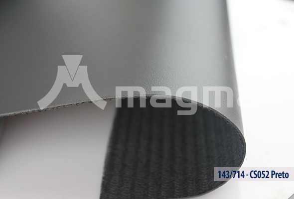 Sintético PVC rígido, com espessura de 1.5mm e base em tecido bidim. O bidim torna o material seja resistente, podendo ser utilizado para cintos, etiquetas e cabedal de calçados.