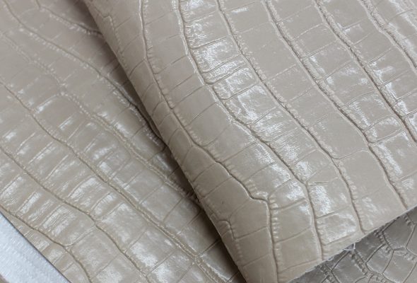 • Jacaré Verniz é um material trabalhado em PVC, macio e maleável. Possui acabamento em verniz, com efeito brilhante e resistente. Ideal para bolsas, calçados e acessórios.