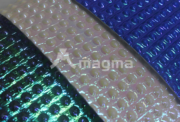 • Spike Irisado é um material exclusivo Magma. Produto com textura e aspecto brilhante, com efeito furta-cor, estruturado para fabricação de brindes, acessórios, cenografia, fantasias entre outras aplicações. Livre de PVC (policloreto de Vinila) e Free Ftalato.