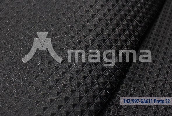 Tecido gravado Dublado é um material exclusivo e fabricado pela Magma. Produto com textura, estruturado para confecção de nécessaires, brindes, detalhes em mochilas, produtos esportivos e bolsas em geral.