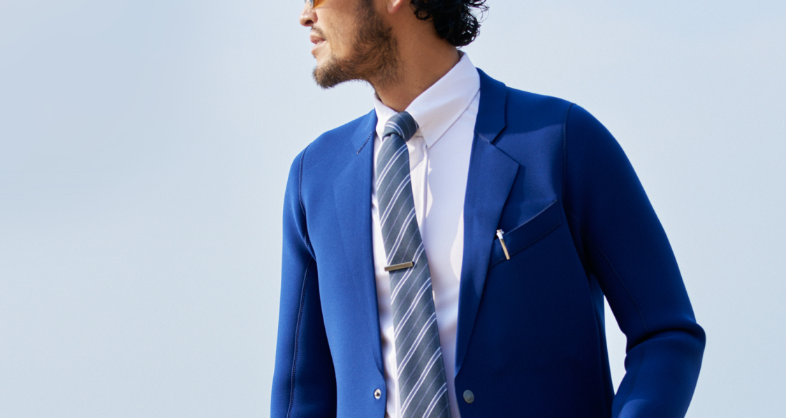 O nome da coleção é True Wetsuits, e nessa linha inclui: camisas, calças, gravatas e ternos feitos de material quik-dry e as camisas, com direito a colarinho e tudo, são feitas com o mesmo material usado em bermudas de praia.