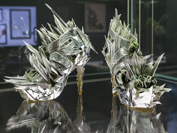 Os sapatos com saltos e formas inusitadas agradam e surpreendem o público que visita a mostra.