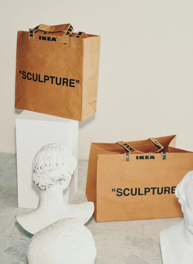 A bolsa IKEA tem a estampa “SCULPTURE” ou “Escultura” em português.