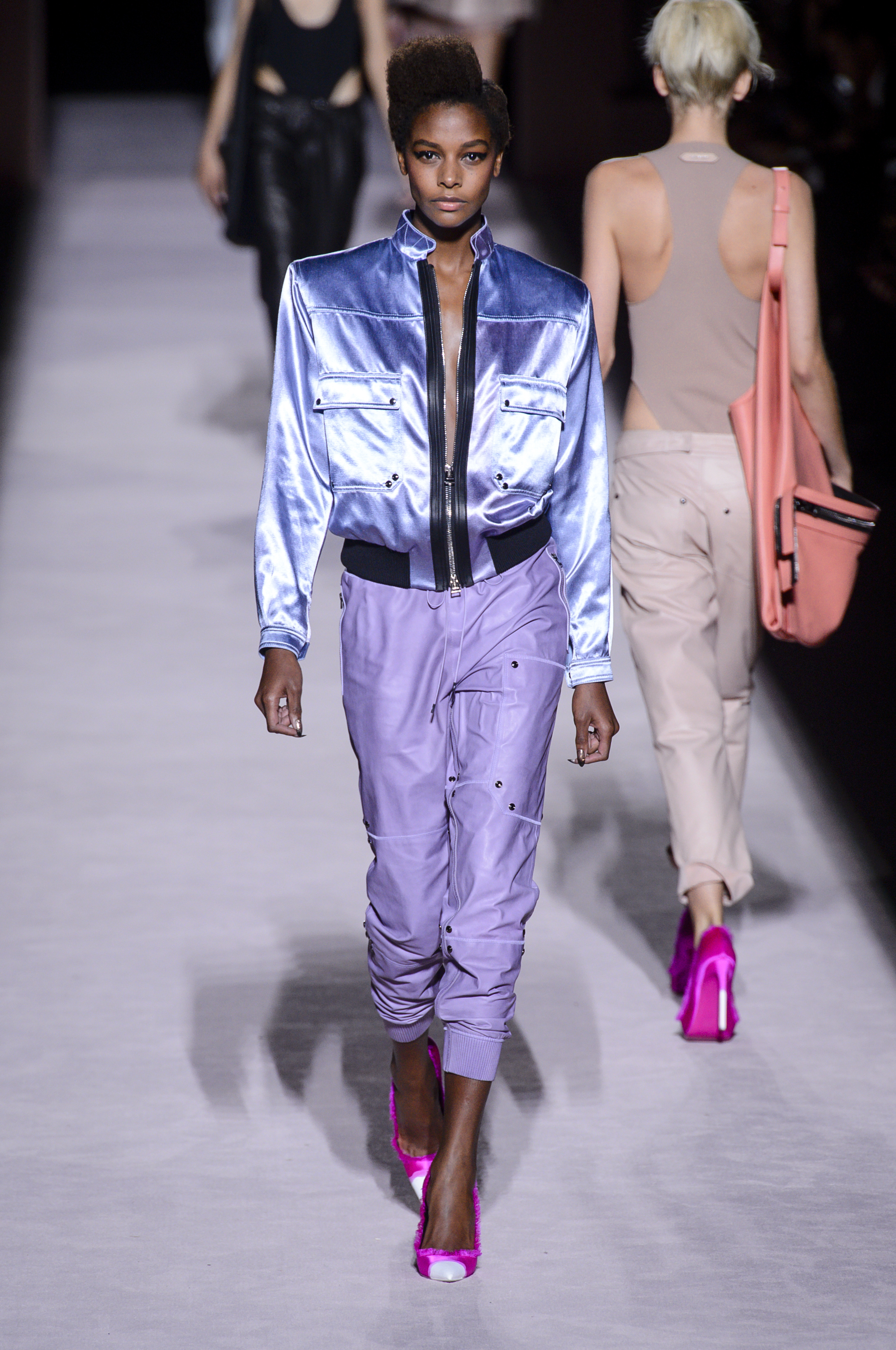Na passarela, a coleção fez homenagem aos anos 1980, em especial com a modelagem repleta de ombreiras e combinações típicas da década, como as peças esportivas usadas com scarpins: