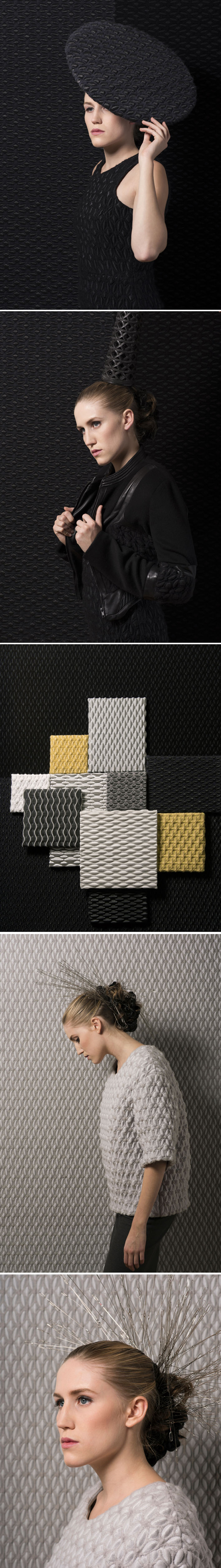 A designer têxtil Aleksandra Gaca desenvolveu a bela linha de tecidos tridimensionais acústicos Architextiles que pode ser utilizada como revestimento de parede, divisórias, revestimento de móveis e almofadas como também em roupas e acessórios. O material de base é a lã, combinado com outros materiais tais como metais. Os tecidos são feitos com uma tecnologia de tecelagem patenteada para criar um efeito tridimensional extremo.